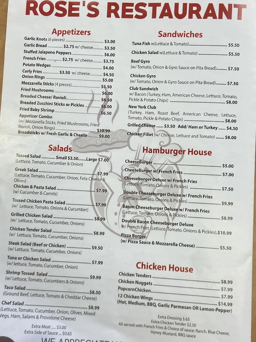 Customer reviews rave about the quality, service, and generous portions, making Roses Pizza a must-visit for pizza enthusiasts and families alike!